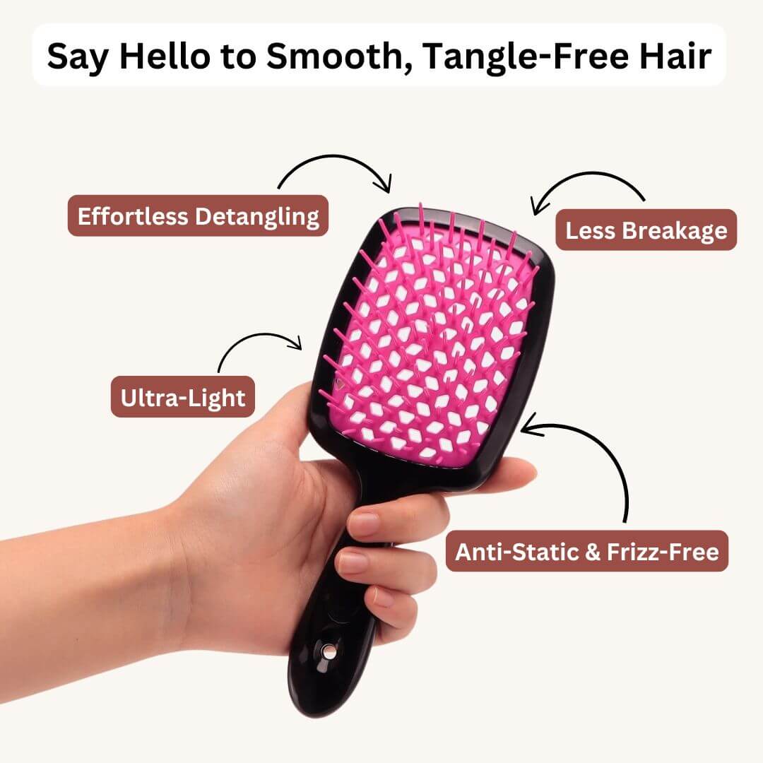 DreamBrush gently glides through knots and tangles, making brushing painless and effortless, even for the most stubborn hair.