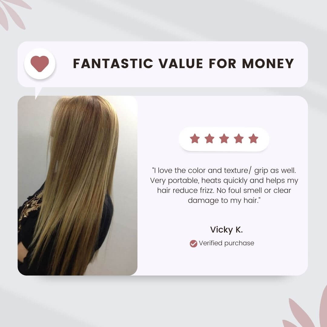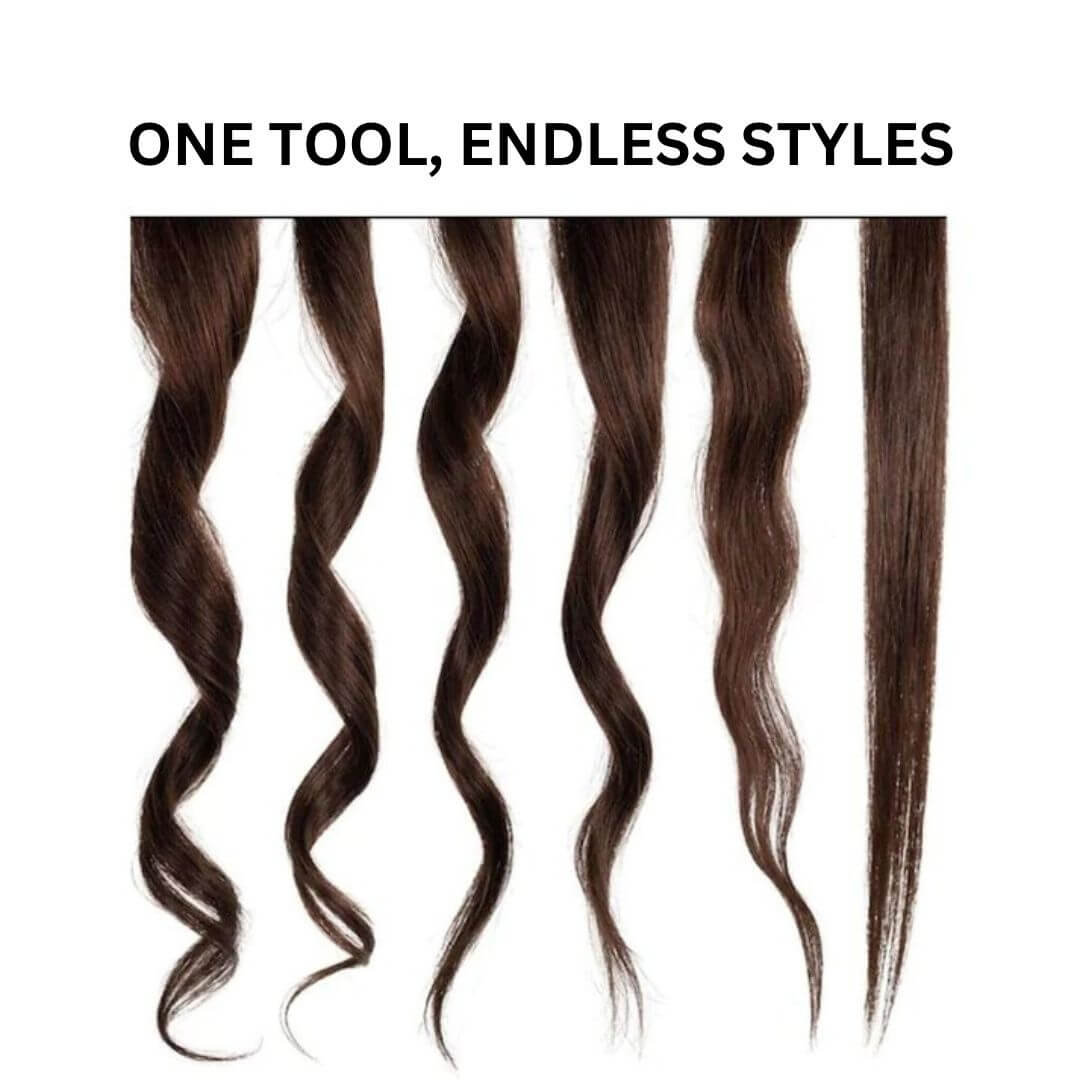 Get ready in half the time with a 2 in 1 hair styling tool that straightens and styles your hair simultaneously. Reduces frizz for a flawlessly smooth look every time. Compact and portable, perfect for glam on the go!