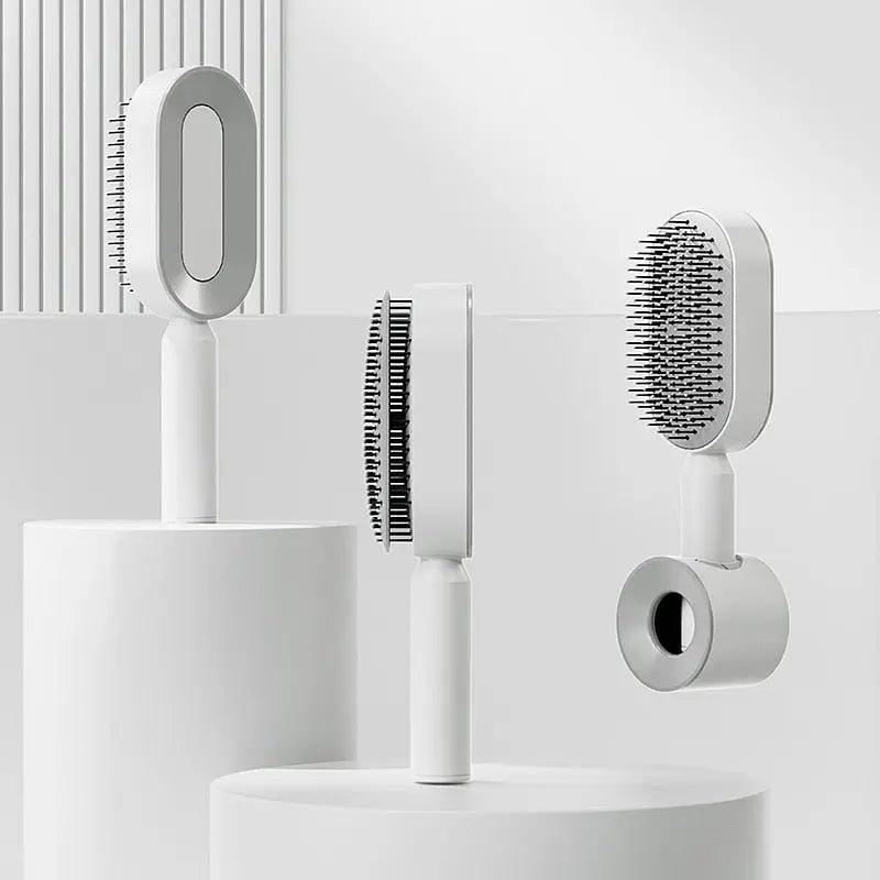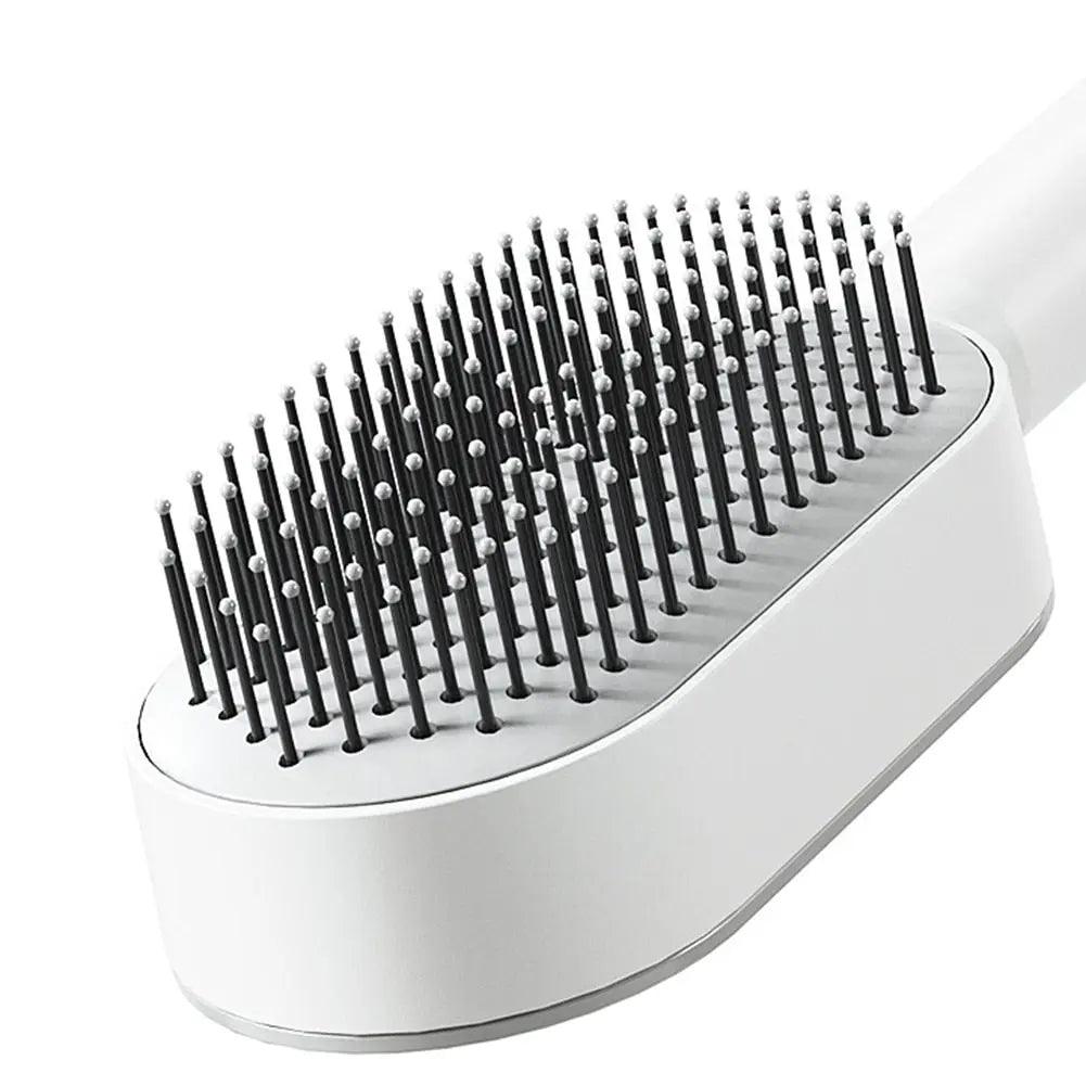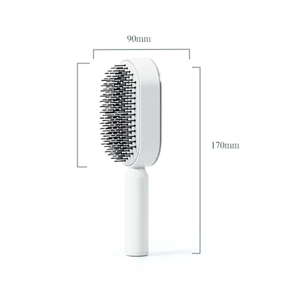 Introducing the Self Cleaning Hair Brush, the perfect solution for efficient hair care. With just one push of a button, this quick-cleaning brush is designed to give you effortless and thorough results without the hassle of manually cleaning hair strands. It reaches all areas of your scalp and helps to massage it while you comb - making your routine much more comfortable. The air cushion design provides gentle but effective brushing while the soft bristles protect your scalp from any damage. Additionally, the frosted non-slip handle makes it easier to control, ensuring that every strand of hair is left in its desired style. And with its convenient use and easy cleaning - the comb becomes a must-have tool for anyone looking for greater control over styling their hair! Experience a faster, more effective way of grooming today with our Self Cleaning Hair Brush!