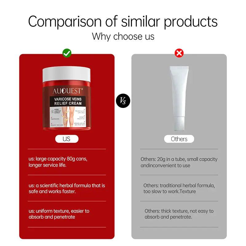 If you are looking for a natural and herbal way to relieve varicose veins, spider veins, and tired legs, then the AuQuest Varicose Veins Relief Cream is perfect for you! Made with several plant essence extracts, this cream helps to soothe and promote blood circulation in your legs. Simply massage into your skin and see the difference! Product Name: AuQuest Varicose Veins Relief Cream Effect: Minimize varicose and spider veins; Relieve tired legs; Relieve dilated capillaries; Tighten skin; Promote smooth skin.